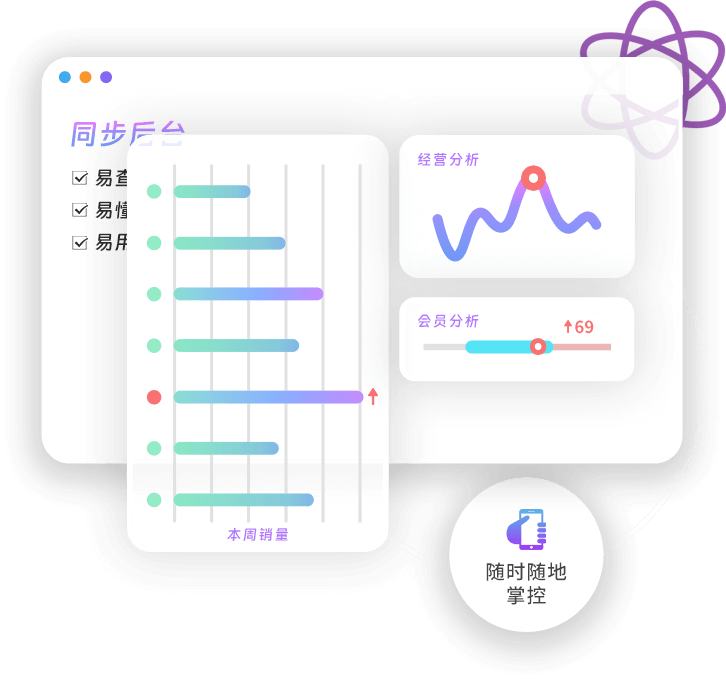 全方位同步电脑后台的全品类报表数据,将经营数据转化为移动端易查、易懂、易用的直观形式,实现无需电脑